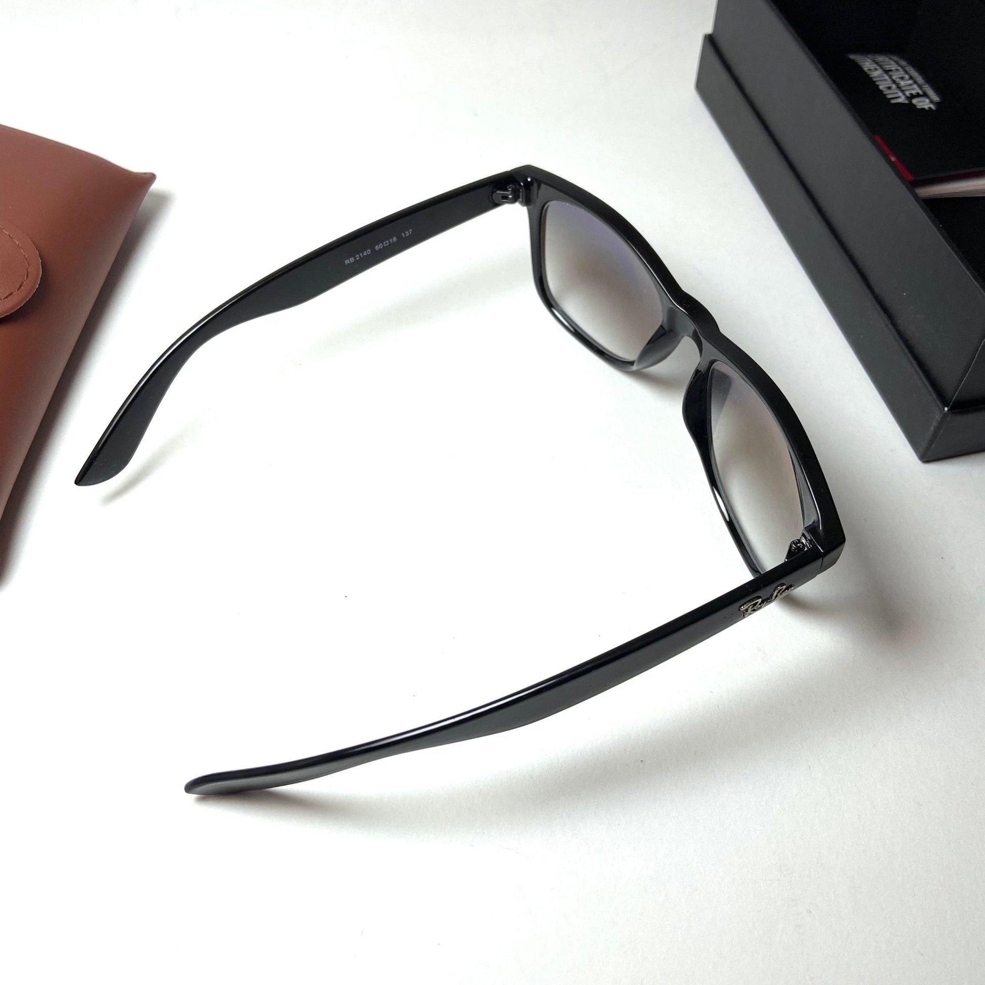 The Ray-Ban Wayfarer RB2140 sunglasses in Gradient Blue are a timeless and iconic style. These sunglasses feature the classic Wayfarer design with a black acetate frame and striking gradient blue lenses. The lenses transition from a darker tint at the top to a lighter shade at the bottom, offering both UV protection and a fashionable look. The Original Wayfarer is known for its bold, distinctive shape and enduring appeal.