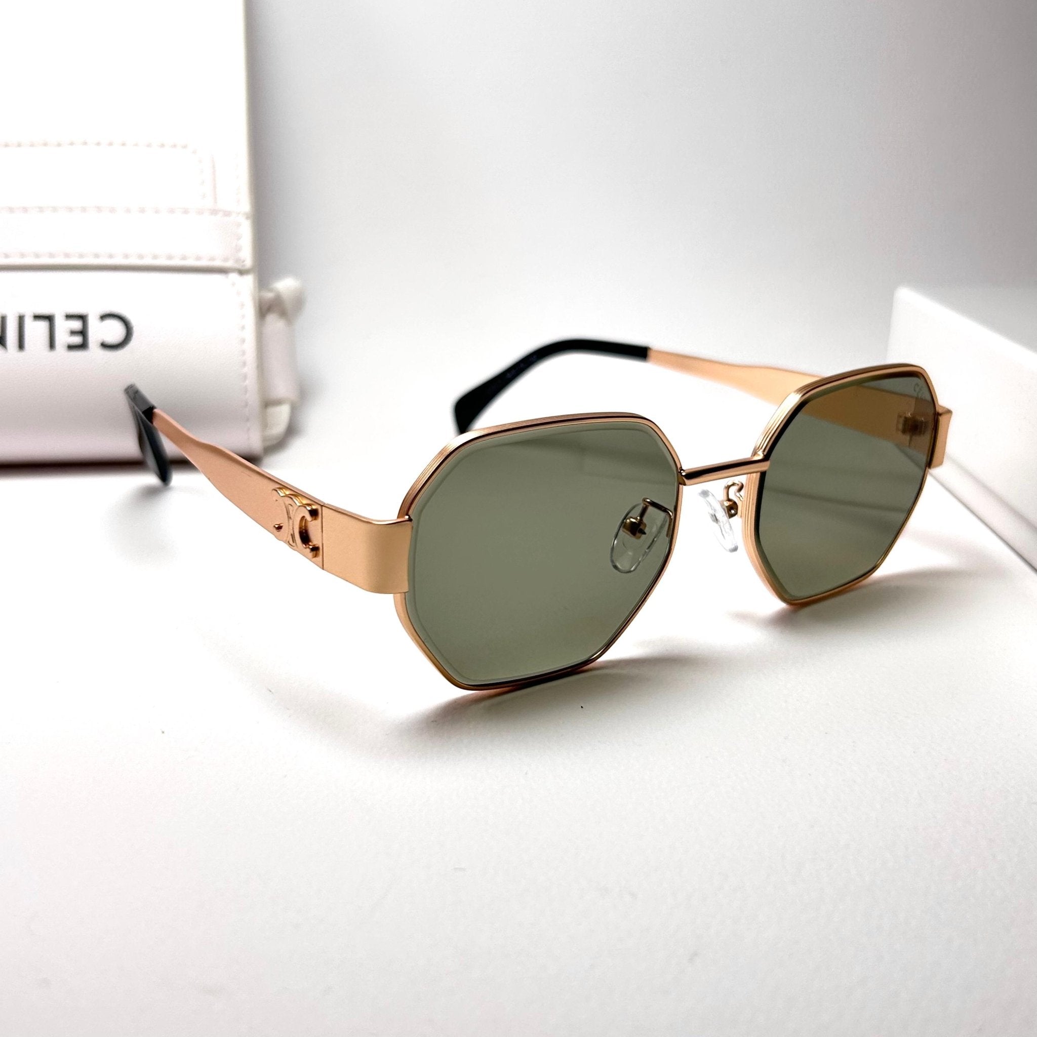 Temple Design: Flat temples with embossed Triomphe logo in black finish