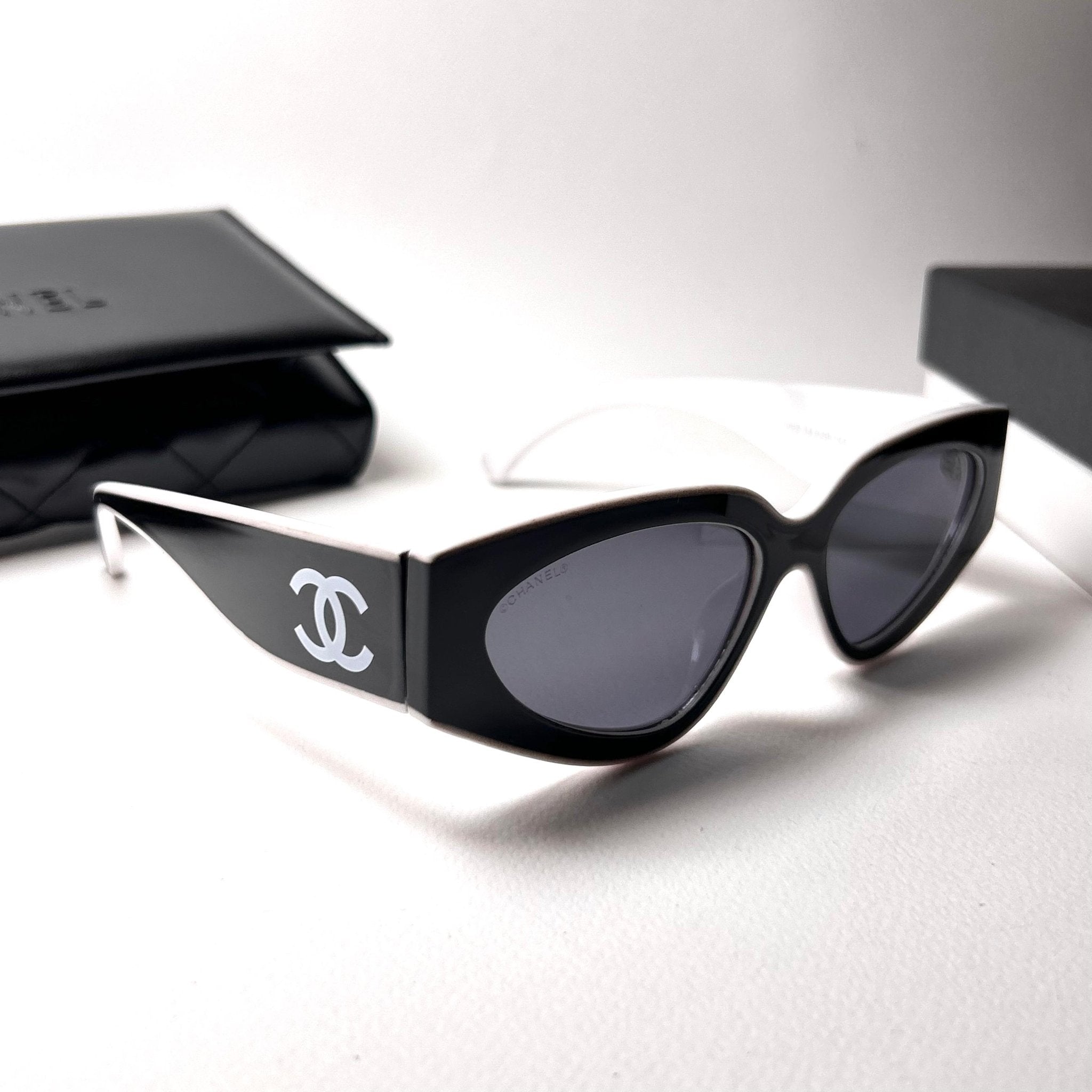 Temple Design: Silver Chanel “CC” logo on wide arms