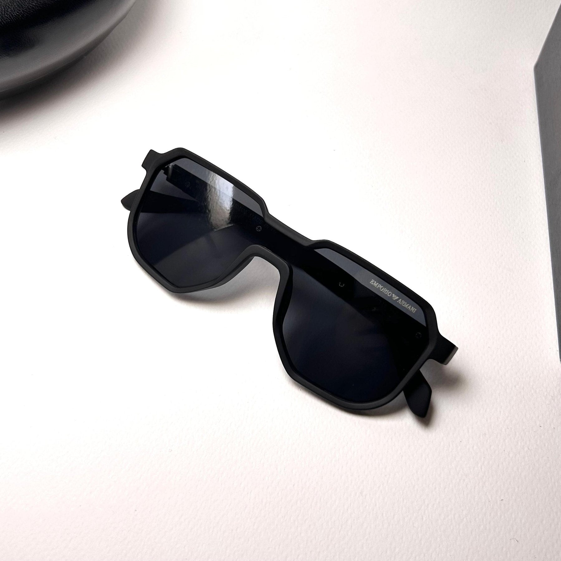 Temple Design: Matte black arms with subtle Armani branding
