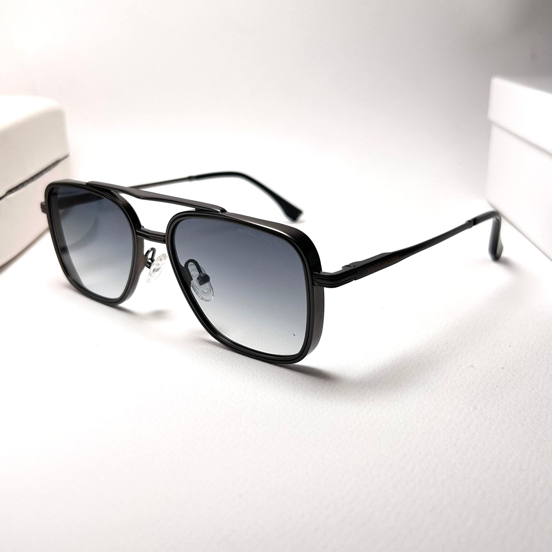 Temple Design: Slim black arms with engraved Marc Jacobs logo