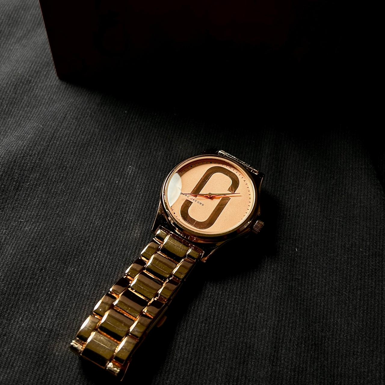 Elegant and modern, the Marc Jacobs 1708 radiates feminine sophistication with its signature oversized “J” dial design. The soft golden pink face captures the perfect balance between contemporary fashion and timeless luxury, while the polished metal bracelet adds a refined edge suitable for both daily wear and special occasions. A watch that effortlessly embodies the chic, confident spirit of the Marc Jacobs woman.