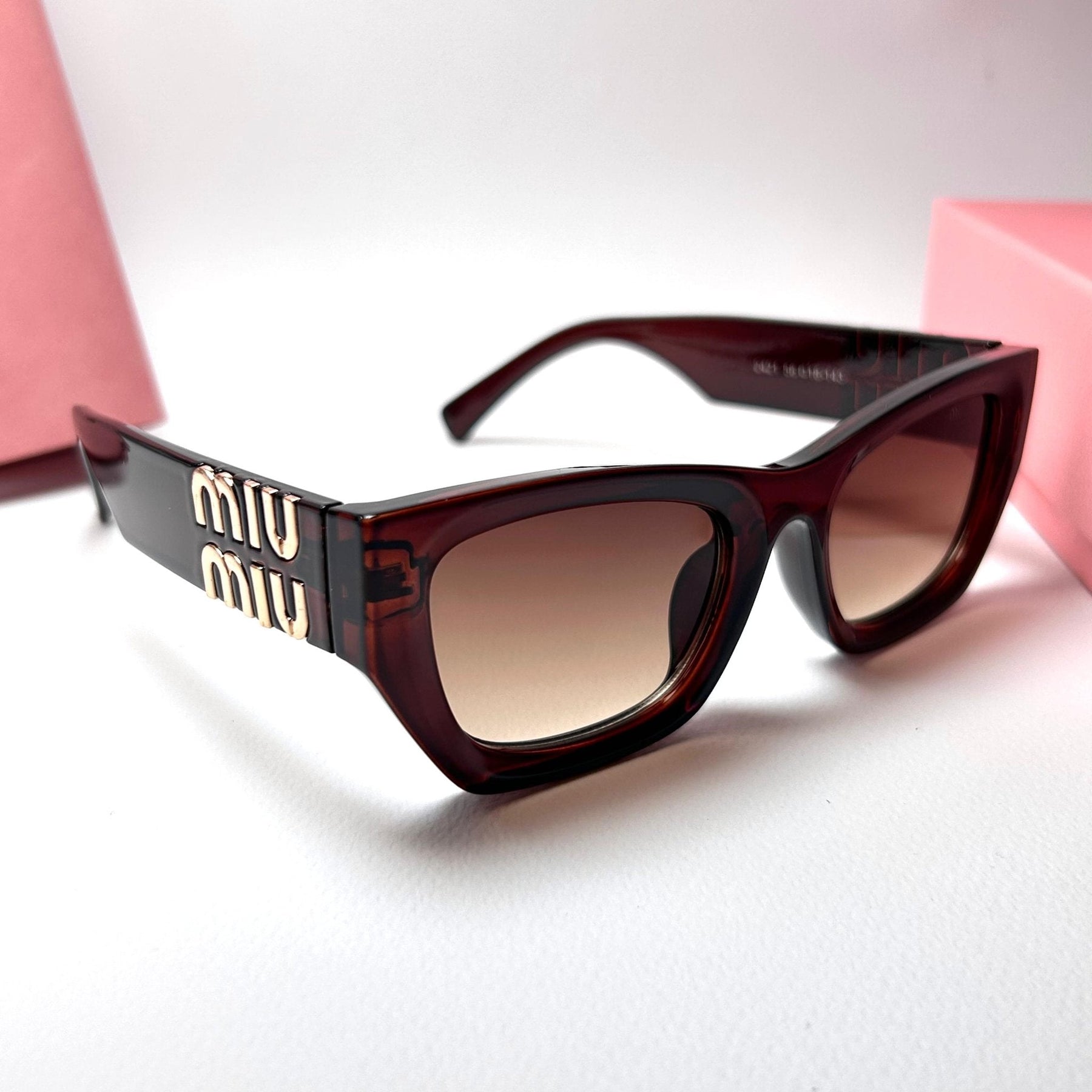Temple Design: Thick temples with layered gold Miu Miu logos