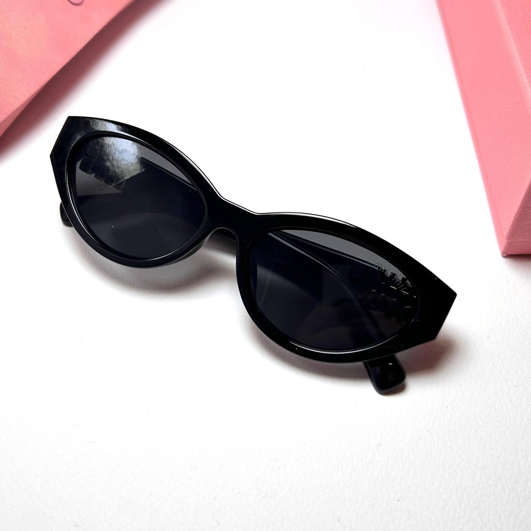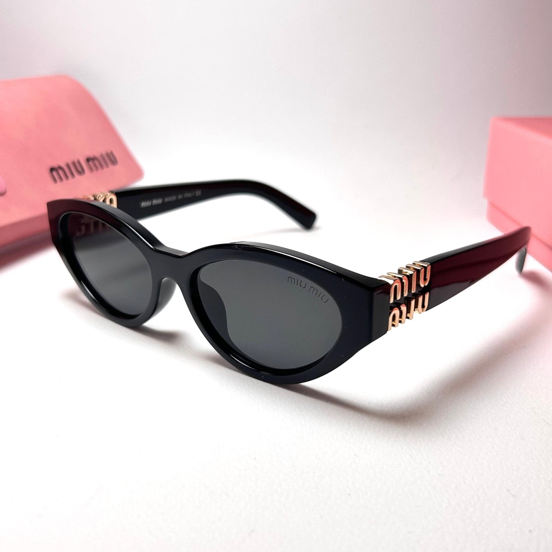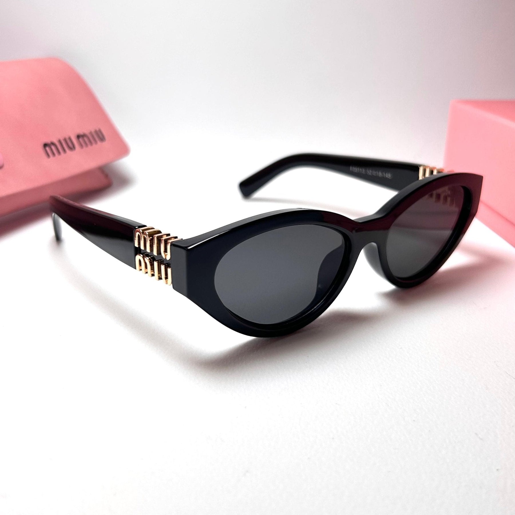 Temple Design: Bold temples with stacked gold-tone Miu Miu metal logos