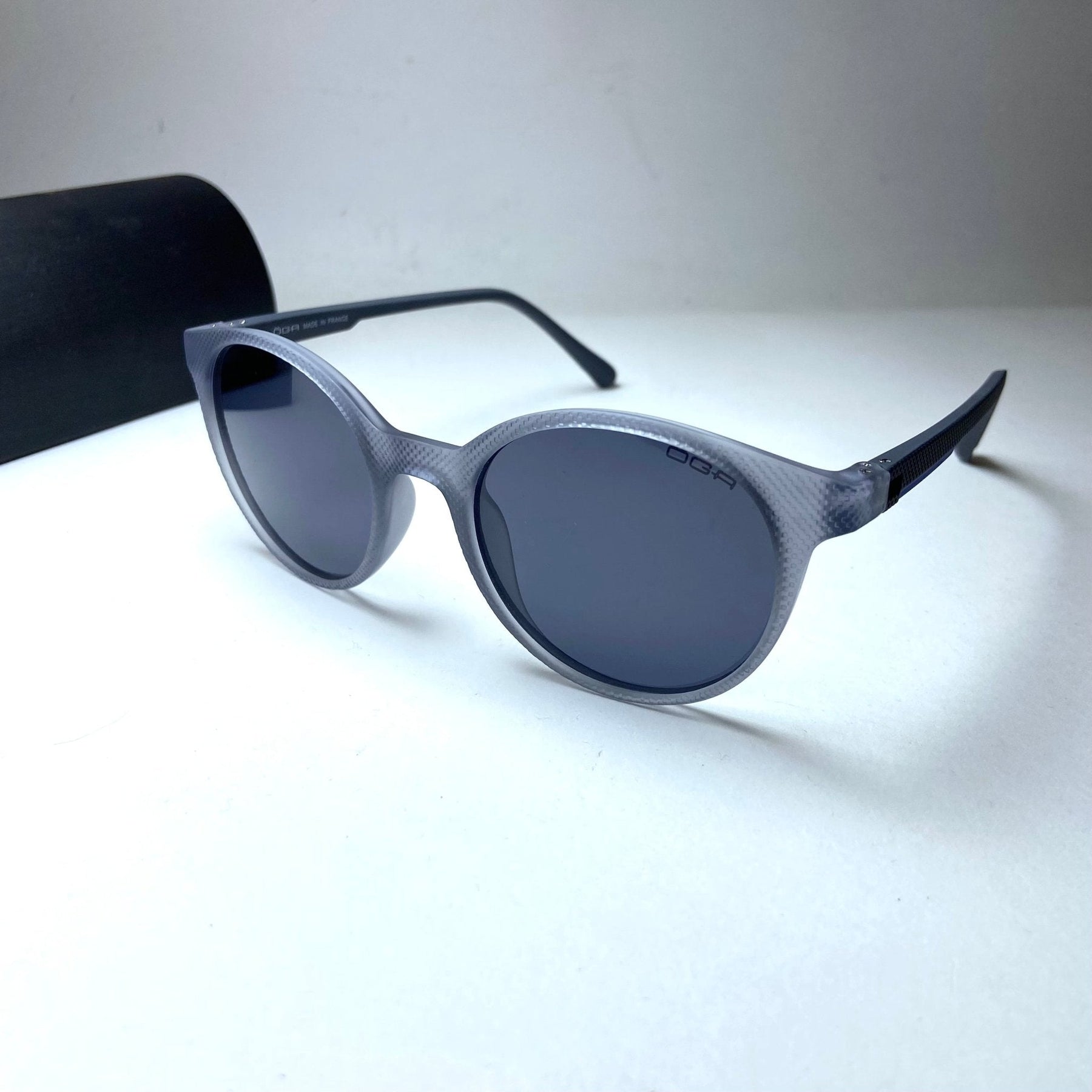 The ÖGA 78052 C8 Polarized sunglasses combine timeless round frames with cutting-edge design. The sleek gray carbon-textured frame offers a lightweight yet durable build, ensuring comfort all day long. Enhanced with polarized lenses, these sunglasses provide crystal-clear vision by reducing glare, making them perfect for driving or outdoor adventures. Designed for those who appreciate refined style and optimal performance.