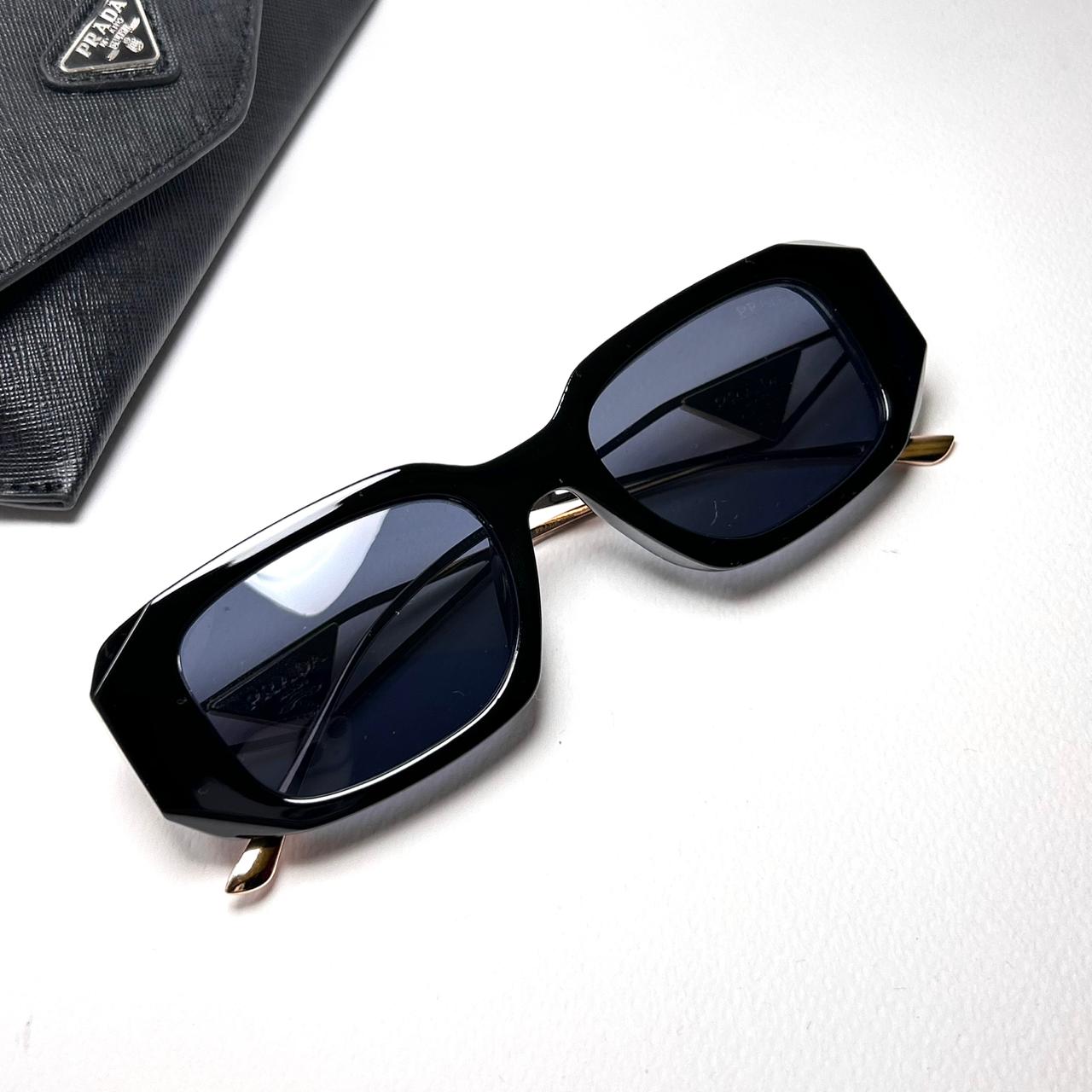 Temple Design: Gold triangular cut-out temples with Prada logo detailing