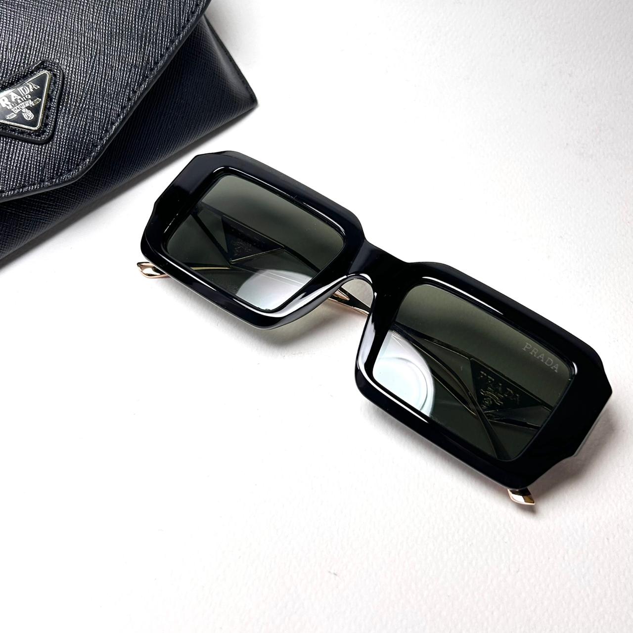 Temple Design: Gold triangular cut-out temples featuring the Prada logo