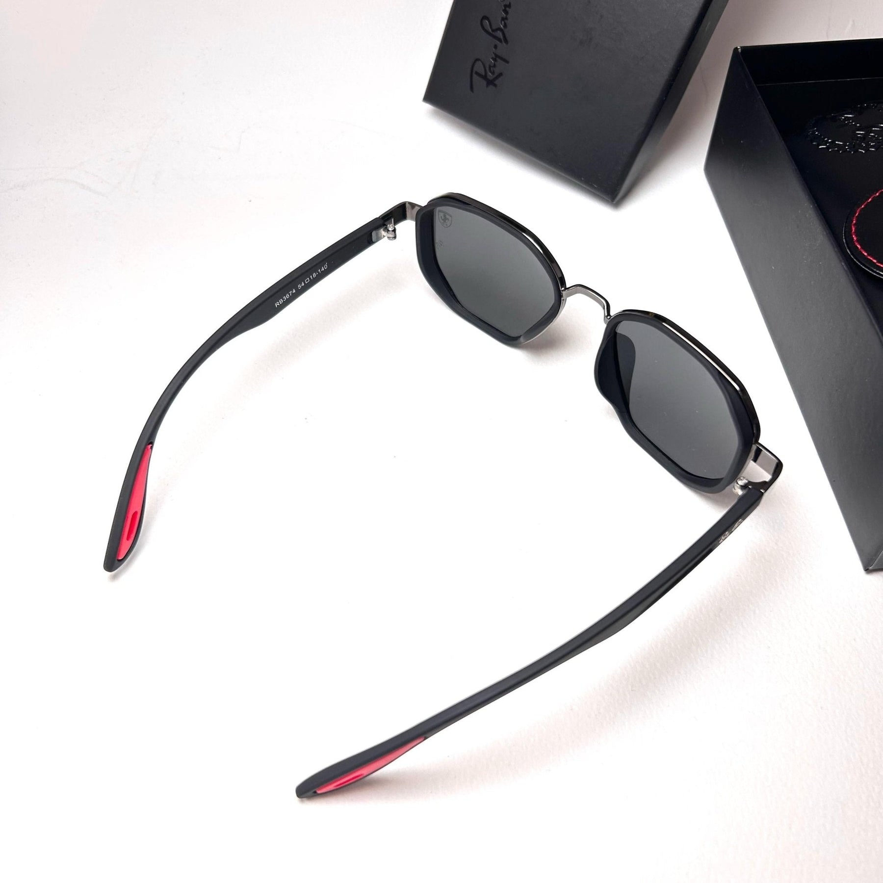These Ray-Ban Geometric Polarized Scuderia Ferrari sunglasses offer a modern and sporty aesthetic. The unique geometric shape is crafted with a black metal and acetate frame, creating a sleek and contemporary look. The temples feature red accents and the Scuderia Ferrari logo, adding a touch of racing-inspired flair. The polarized lenses provide superior glare protection and visual clarity.