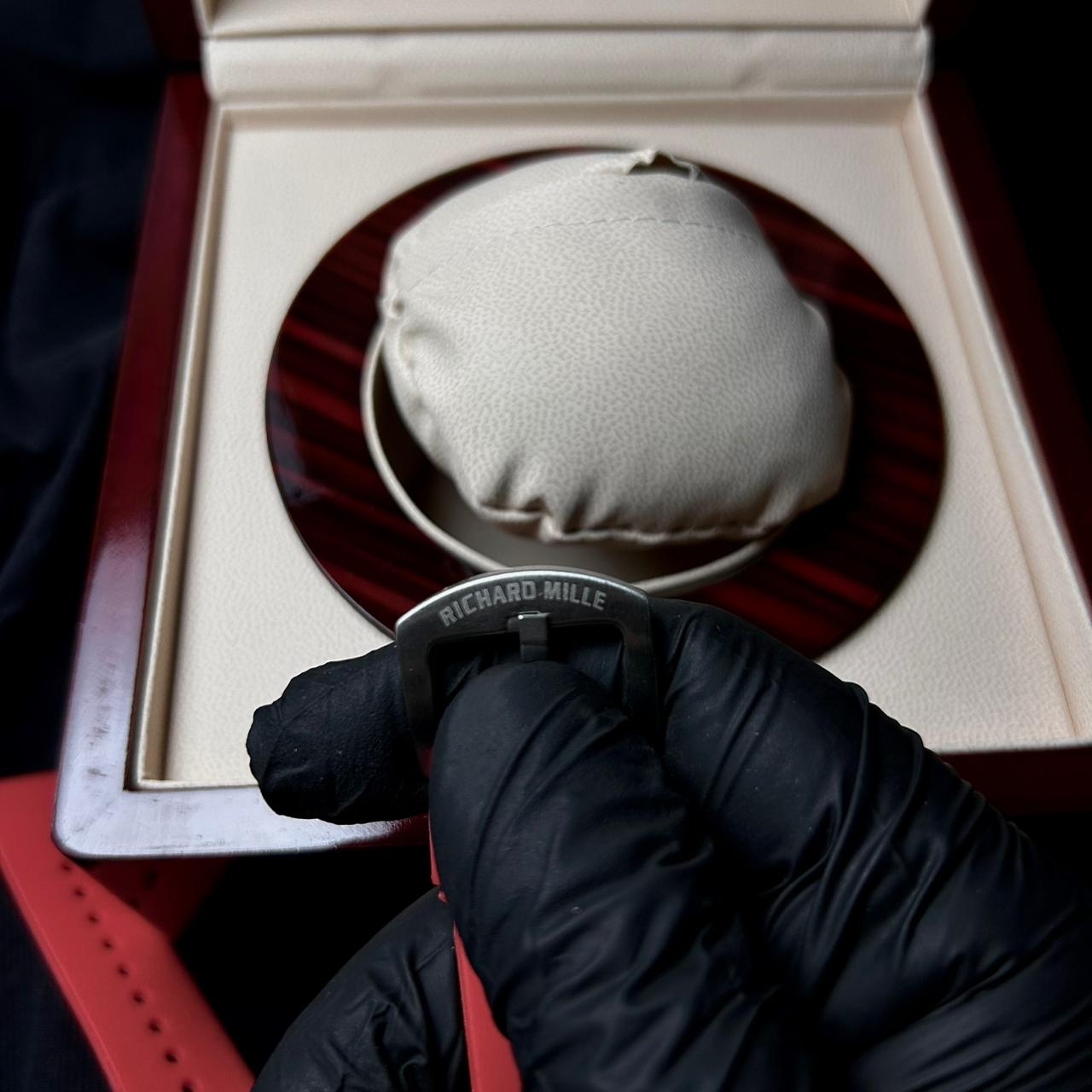 The Richard Mille RM 011-03 Chronograph Skeleton – Red exudes modern audacity with its vivid red case and strap paired against a technical skeleton dial. The transparent face showcases the inner workings of the chronograph, featuring multi-layered detailing and exposed mechanics that capture the essence of avant-garde craftsmanship. Its bold red tone embodies passion and strength, making it a powerful statement piece for those who dare to stand out.