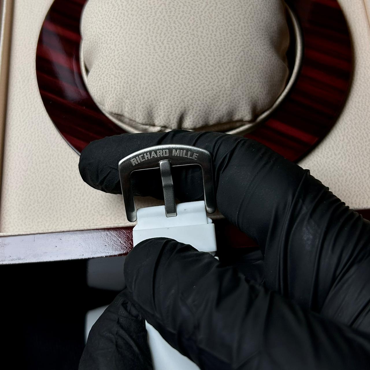The Richard Mille RM 011-03 Chronograph Skeleton – White redefines sporty luxury with its avant-garde aesthetics and high-performance design. The white case and strap exude refined minimalism, while the open-worked skeleton dial reveals a complex network of gears, chronograph counters, and architectural bridges. This timepiece radiates sophistication and confidence, offering a modern edge ideal for collectors and style enthusiasts alike.